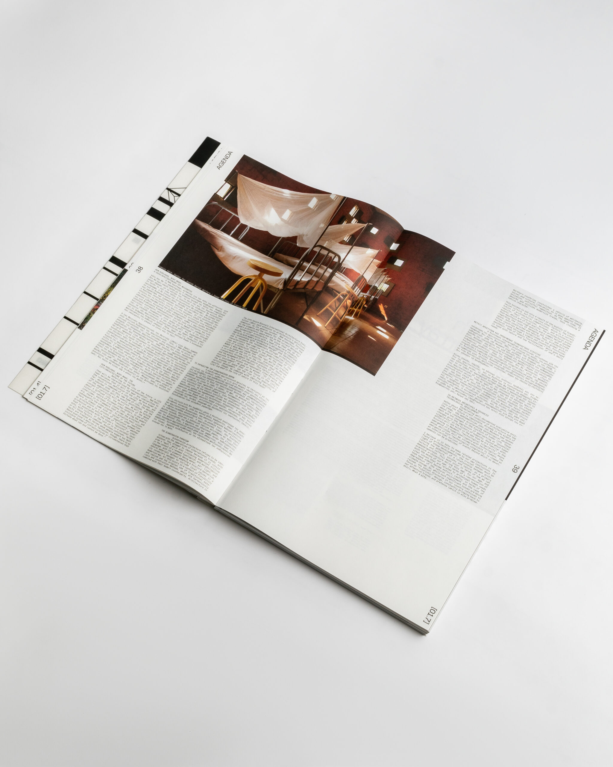 Sato Life is a printed product display that brings together the most popular furniture introduced by the SATO company through its exclusive collaboration with an extensive network of partners from leading furniture companies all over the world. The SATO Group has been active in the office furniture market since 1964. The aim is to re-introduce SATO to the world of architects and interior designers as a quality and innovative design-oriented company. The clean style of design highlights the products as protagonists, while at the same time the dominance of white, empty space reproduces the atmosphere of a gallery in which the reader can mentally wander. Freed from the compulsion of serving a tight corporate brand manual, this printed showcase redefines SATO’s corporate identity, using elements like a light-weight paper in the body and on the cover, as well as a red thread binding technique.