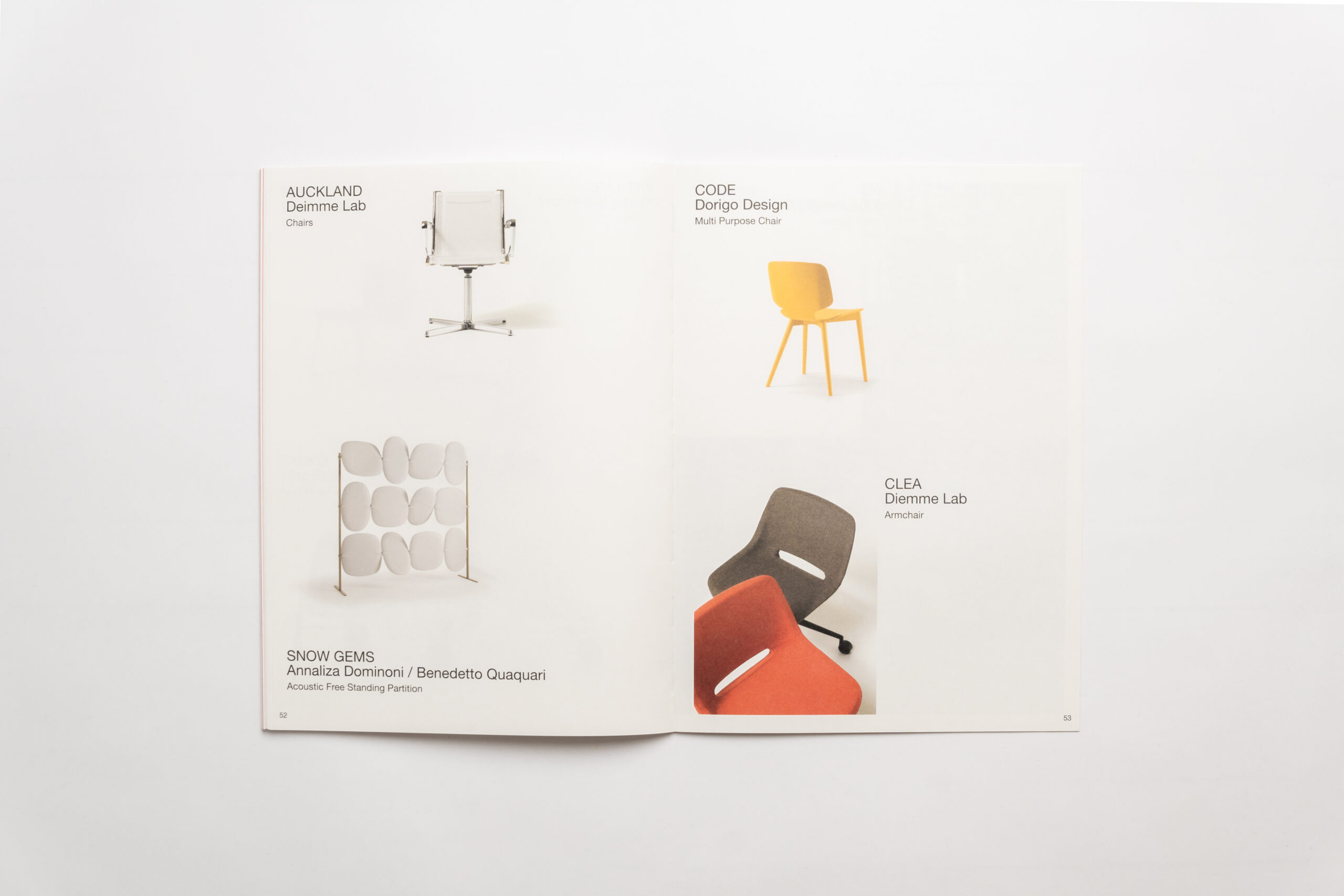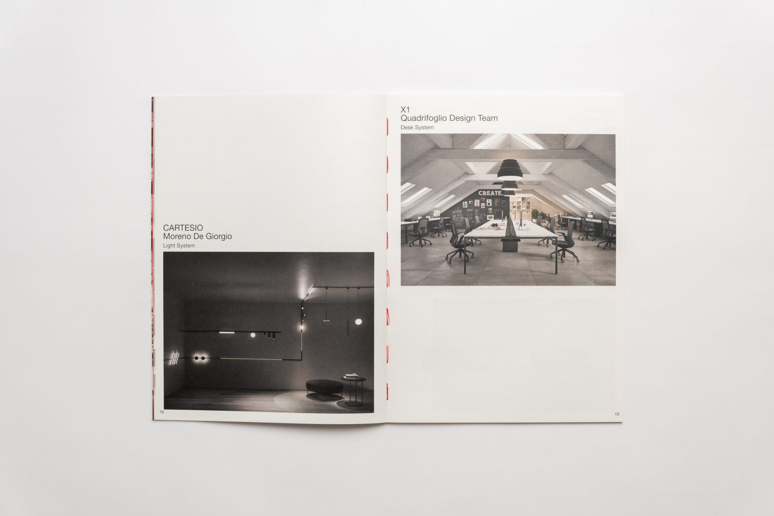 Sato Life is a printed product display that brings together the most popular furniture introduced by the SATO company through its exclusive collaboration with an extensive network of partners from leading furniture companies all over the world. The SATO Group has been active in the office furniture market since 1964. The aim is to re-introduce SATO to the world of architects and interior designers as a quality and innovative design-oriented company. The clean style of design highlights the products as protagonists, while at the same time the dominance of white, empty space reproduces the atmosphere of a gallery in which the reader can mentally wander. Freed from the compulsion of serving a tight corporate brand manual, this printed showcase redefines SATO’s corporate identity, using elements like a light-weight paper in the body and on the cover, as well as a red thread binding technique.